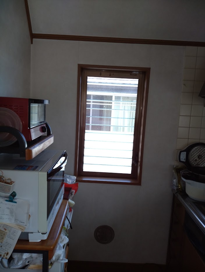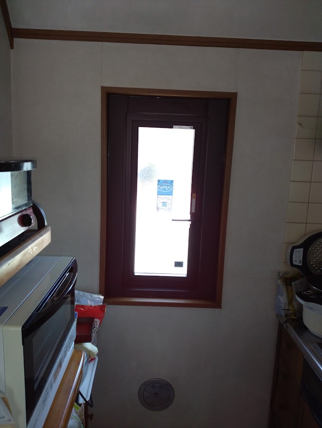 先進的窓リノベの先行工事で、キッチンの横にあるガラスルーバー窓をYKKAPマドリモ樹脂窓に交換をしてきました。