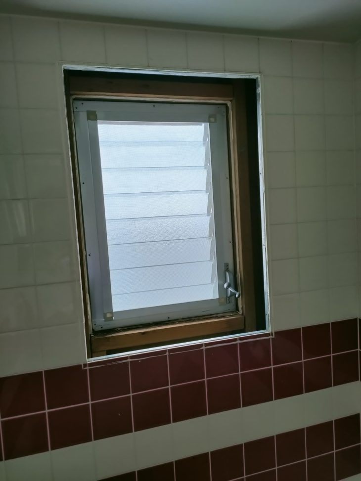 昨日の浴室樹脂窓取り付け