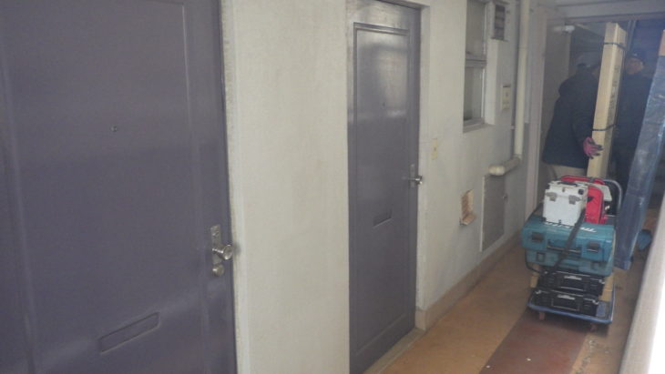 1月から、マンション全てのドア交換を行う前に、