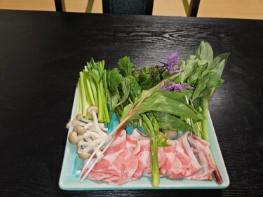 山菜はしゃぶしゃぶで頂いた後に山菜ごはんとおそばが出てきます。