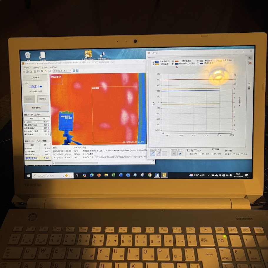 施工後に一度行ったのですが、機器に直接太陽の熱が入ってしまい、しっかりとしたデーターを取る事が出来なかったので、万全の準備をして再挑戦。