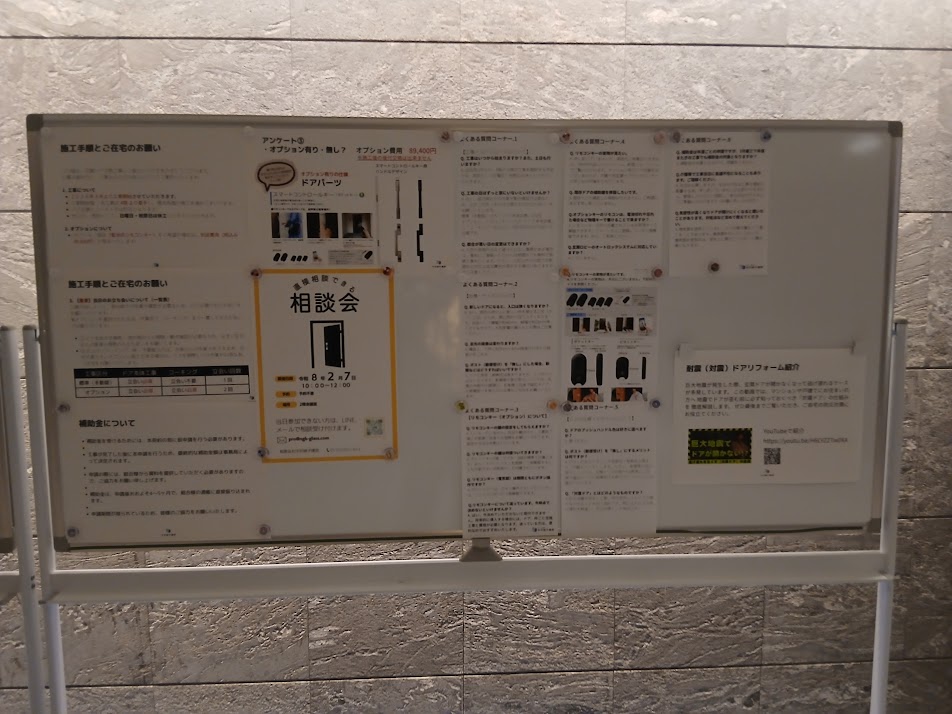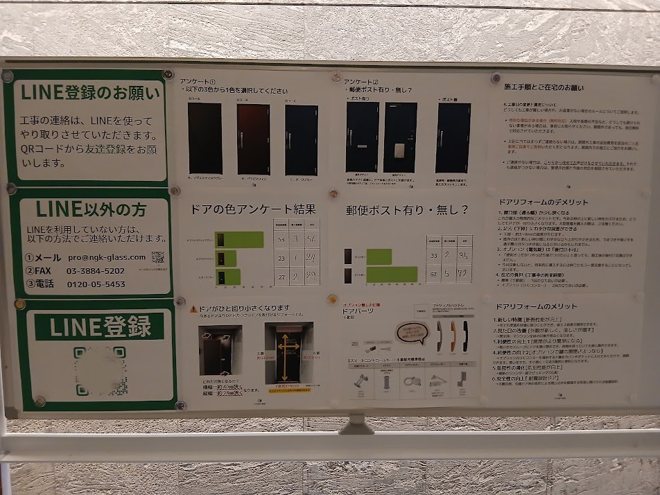 昨日は、東京都中央区月島にあるマンションドアの交換に伴う、色を投票で決めるので投票結果を張り出しに。