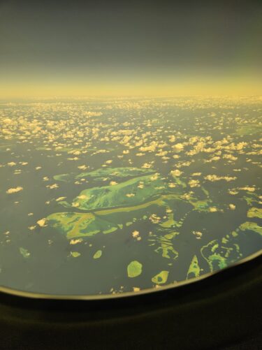 飛行機の窓からは、サンゴで出来ているのかな?