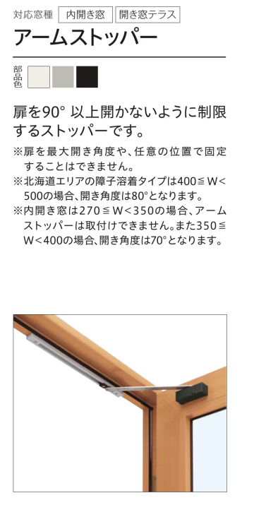 あまり内開きタイプにアームストッパーを取り付ける人は居ないので、