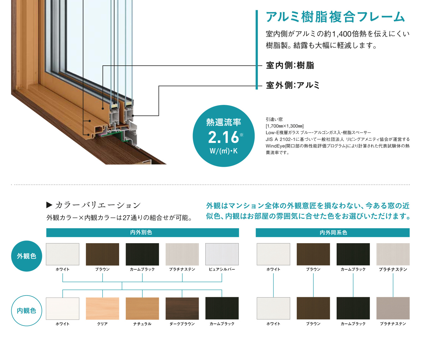 LIXILは、外観色にブラウンがオータムブラウンっと、独自の色を使っているので、既存窓の色と合わせる事が出来ないのが欠点。