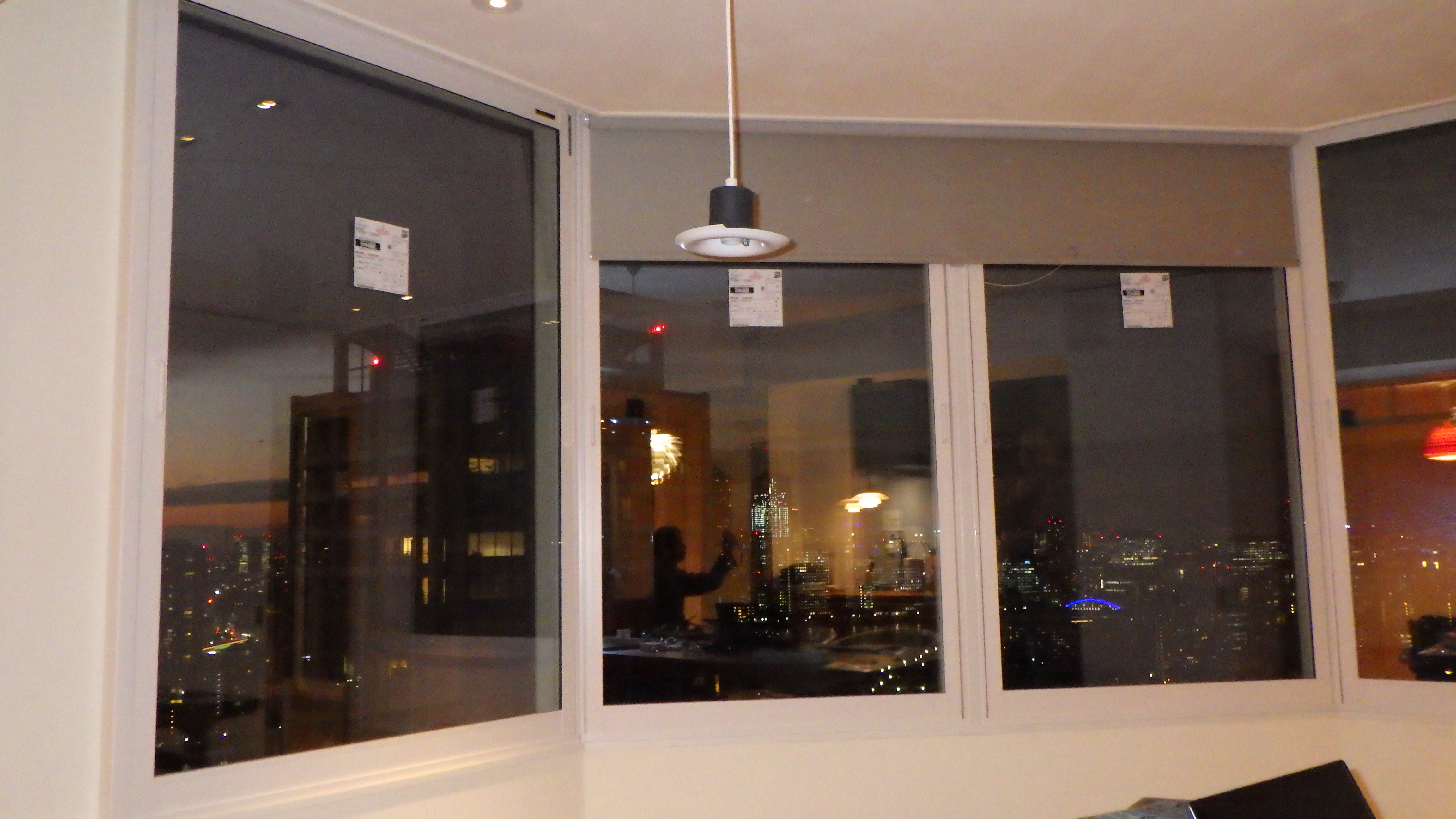 今回の内窓設置窓は、正面2面が直線で連窓に、右と左が45度の異形になっているFIXタイプの窓です