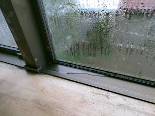 湿度がかなり高いので、部屋はエアコンを付けていれば、窓の外側が結露を起こしています。