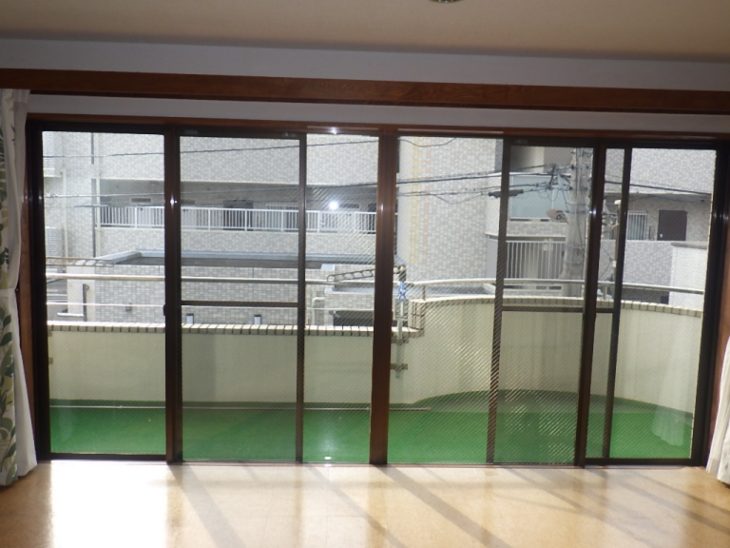 2枚引き違い窓が2つ付いてるタイプです。大きくて解放感あるように見えますが真ん中に方立てが残ってしまいます。