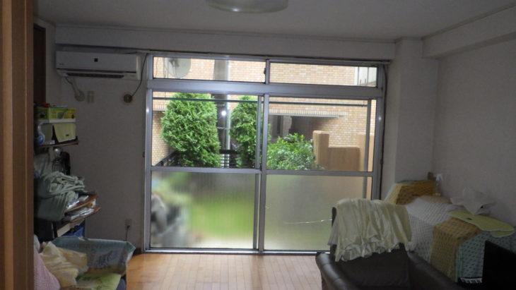 この物件は築35年位のマンション掃き出し窓になります。