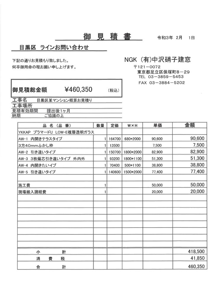 今回は、下見にお伺いをさせて頂く前に、ラインからのお問い合わせでお見積りと補助金にポイントのご提出をさせて頂きました。