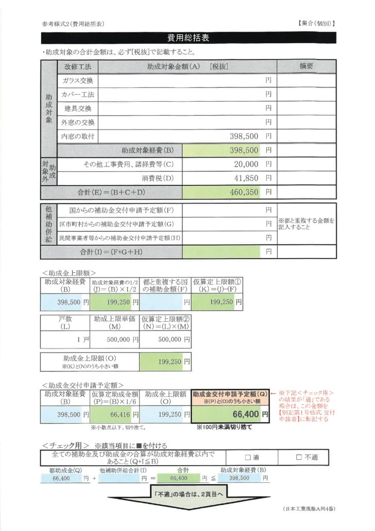 見積金額418,500円の中で、現場搬入諸経費は補助金対象外金額になる20,000円を引いた398,500円に補助金がもらえます。