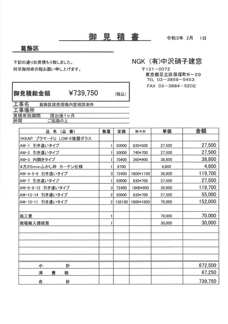 葛飾区で建売物件をご購入のお客様からご相談でYKKAPプラマードUのお見積りと補助金の詳細を作らせて頂きました。