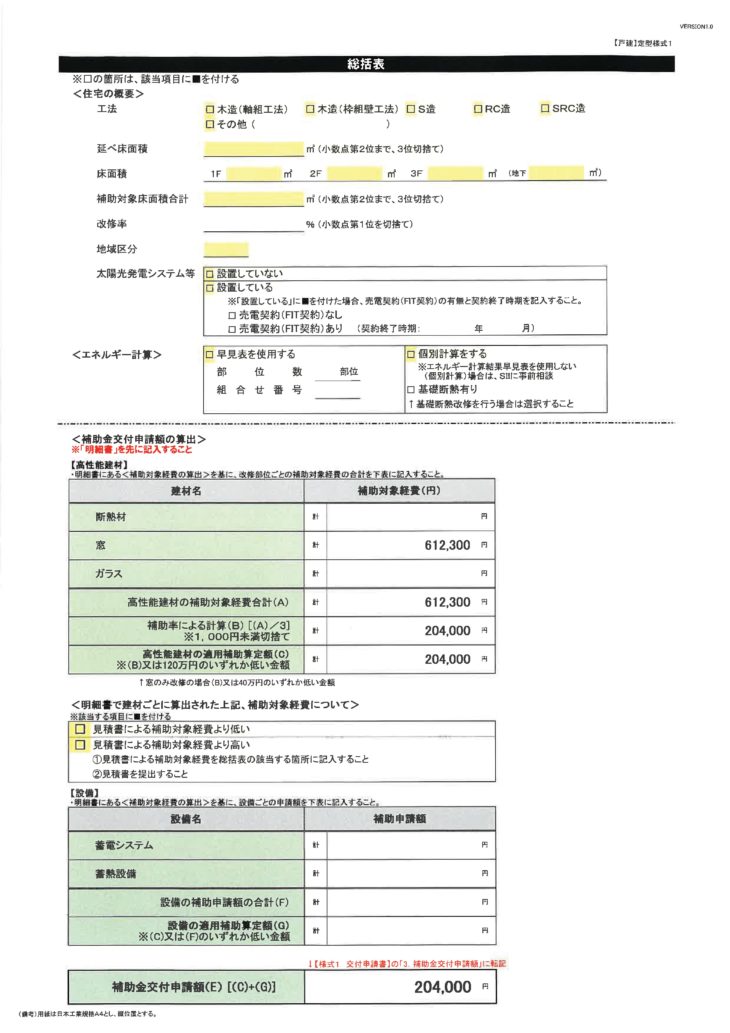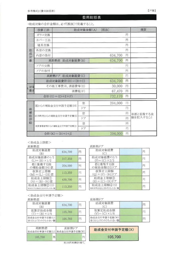 国(断熱リノベ))の補助金が204,000円なので、金額に加算すると45,000円が