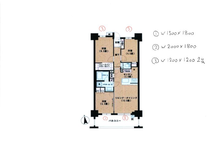 足立区にあるマンションでの実例になります。窓は、4セット W1500*1800-1 W2000*1800-1 W120*1200-2