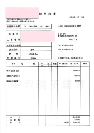 2,464,990円から諸経費と消費税を抜くと、2,175,900円になり、この20%の435,100円が補助金額になります。