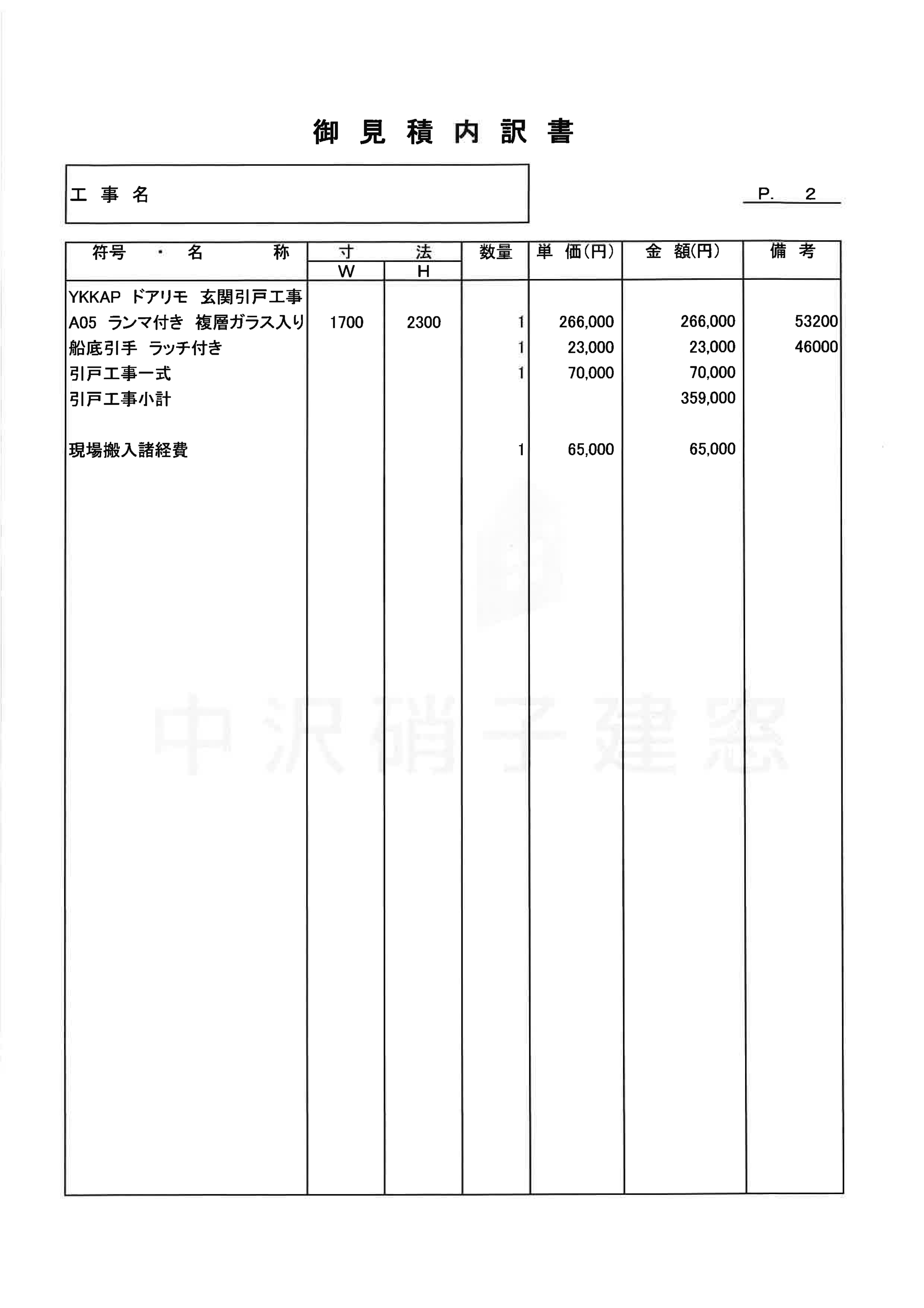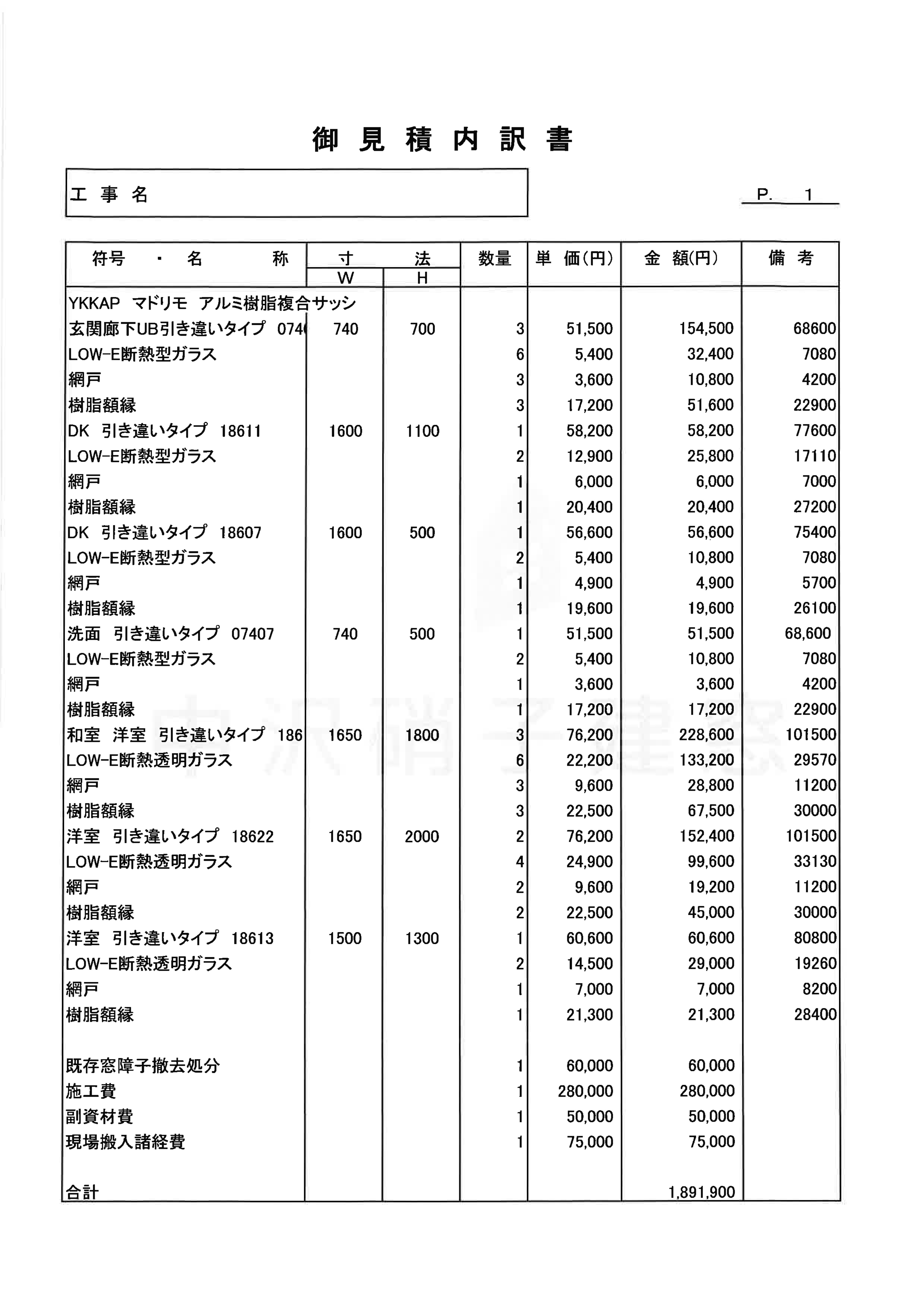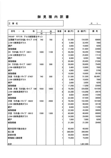 1 W1650×2000=3.3㎡ 21000円×2本=42000円