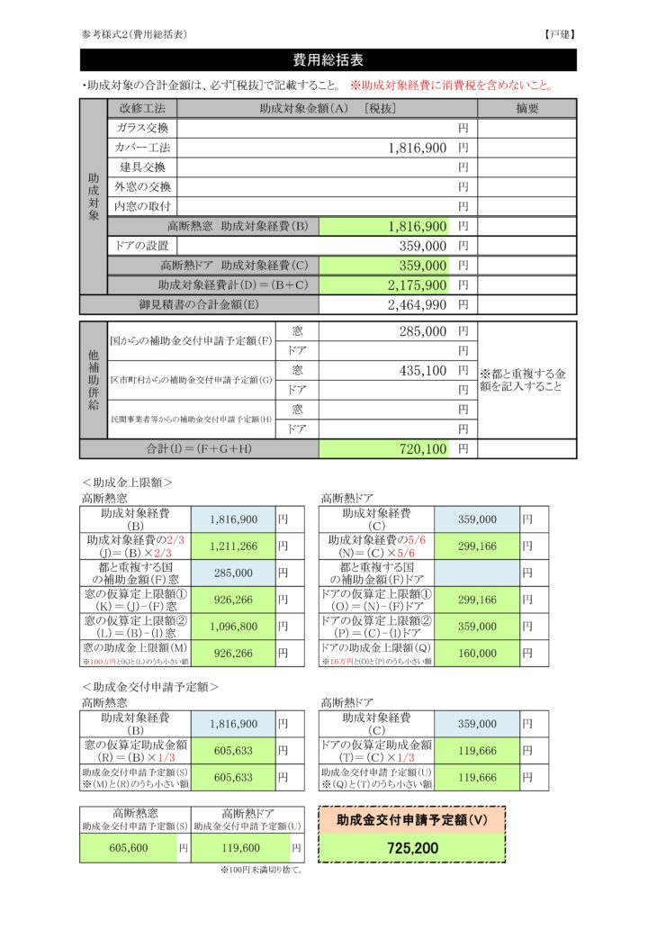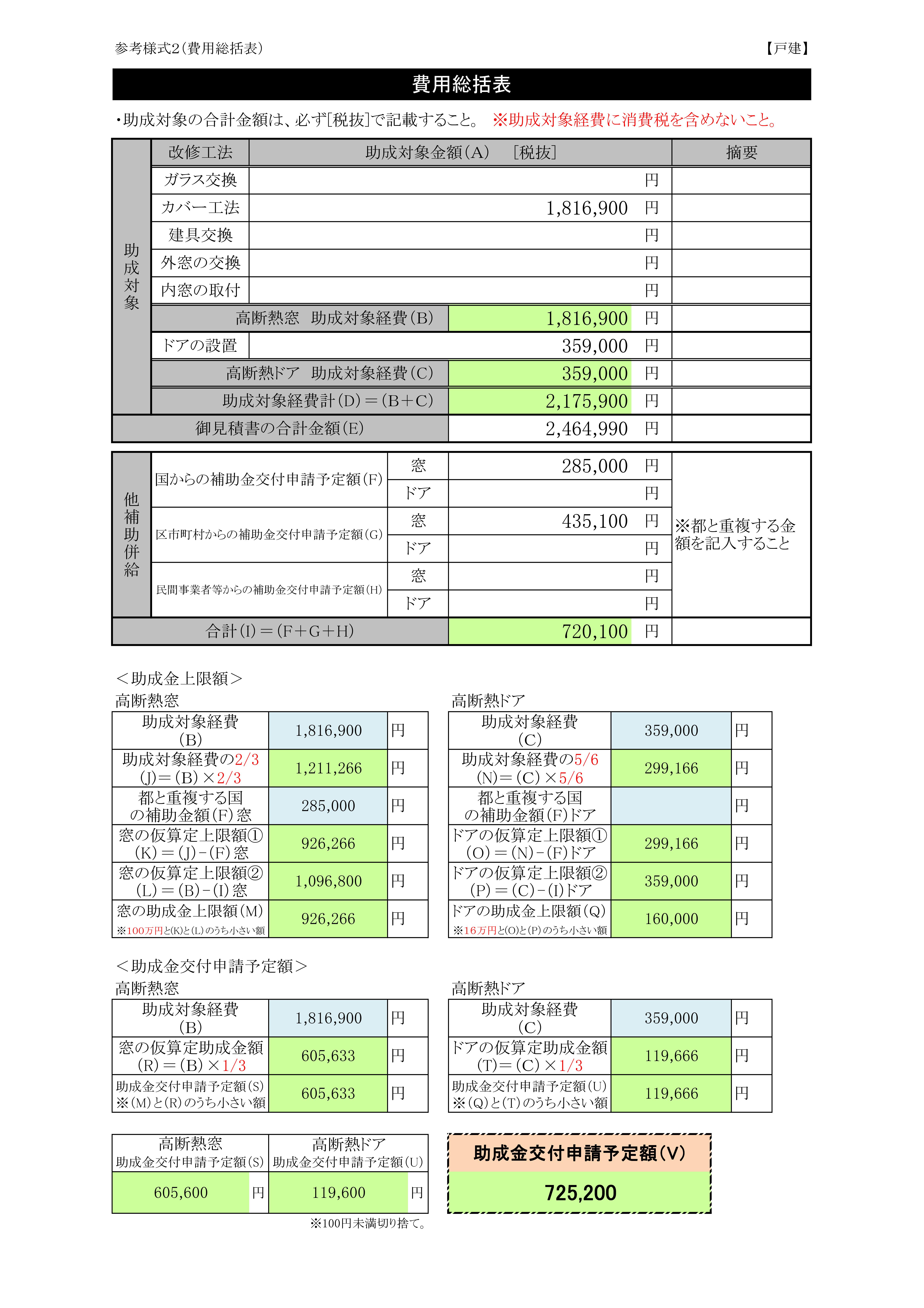 補助金額は、商品に予め㎡単価が決まっており、その㎡単価の1/3が補助