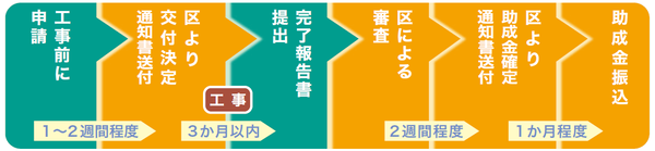 ・助成金の交付決定を受けた後3か月以内(年度内)に工事代金の支払いを終え、区による完了検査を受けること。