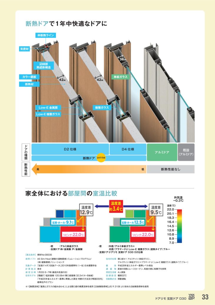 D2とK2は、ドア本体からだけではなく、枠にも断熱材が使われているので