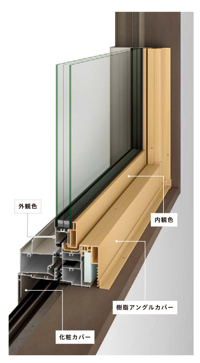 違いは、アルミ枠の間に断熱樹脂スペンサーが入っており、トリプルガラス仕様。