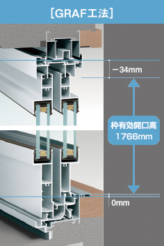 グラフ工法に関しては、下枠0mmで上枠の34mmが狭くなった事になります。