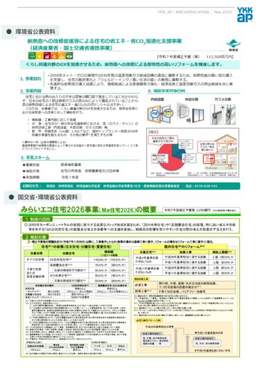 既存住宅の断熱リフォーム支援事業に戸建・集合住宅のZEH化・省CO2化促進事業
