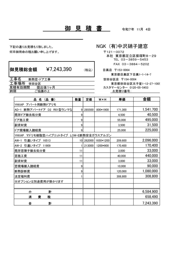 - 実施する事業(省エネ診断等、断熱改修)の見積書