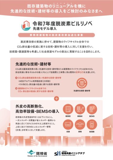 国では業務用建築物の脱酸素改修加速化事業と言う物が有るので、