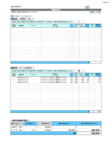 窓の大きさを入れる事で、補助単価が389,000円と出て来ます。