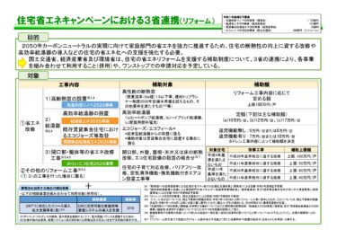 - 国:既存住宅の断熱リフォーム支援事業は、工事前に予約申請が必要です
