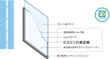 2枚のガラスの間にある真空層が、一枚ガラスの約6倍の断熱性能を実現。室温を逃しにくく、節電にもぴったりです。