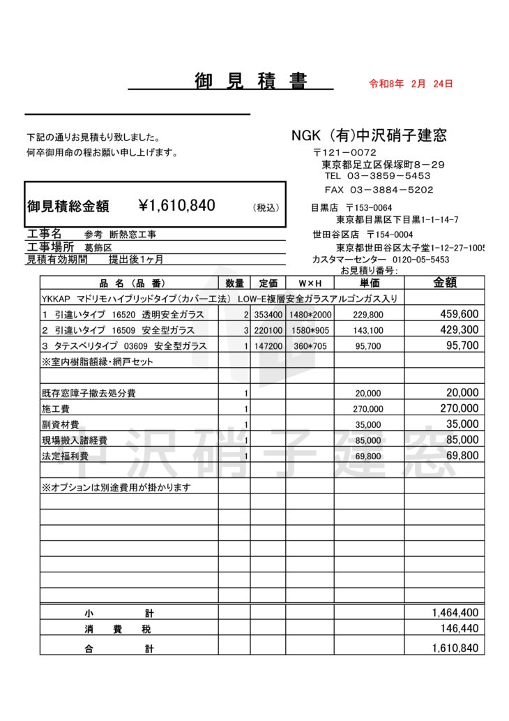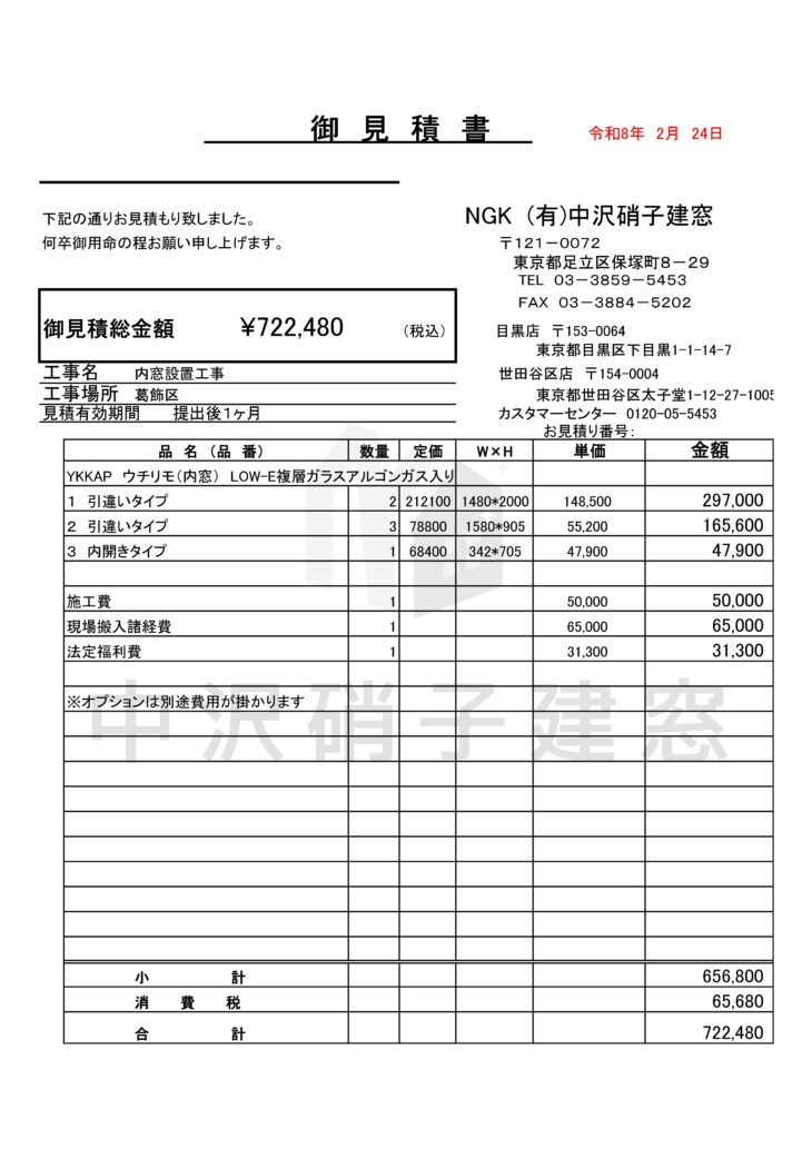内窓工事参考例