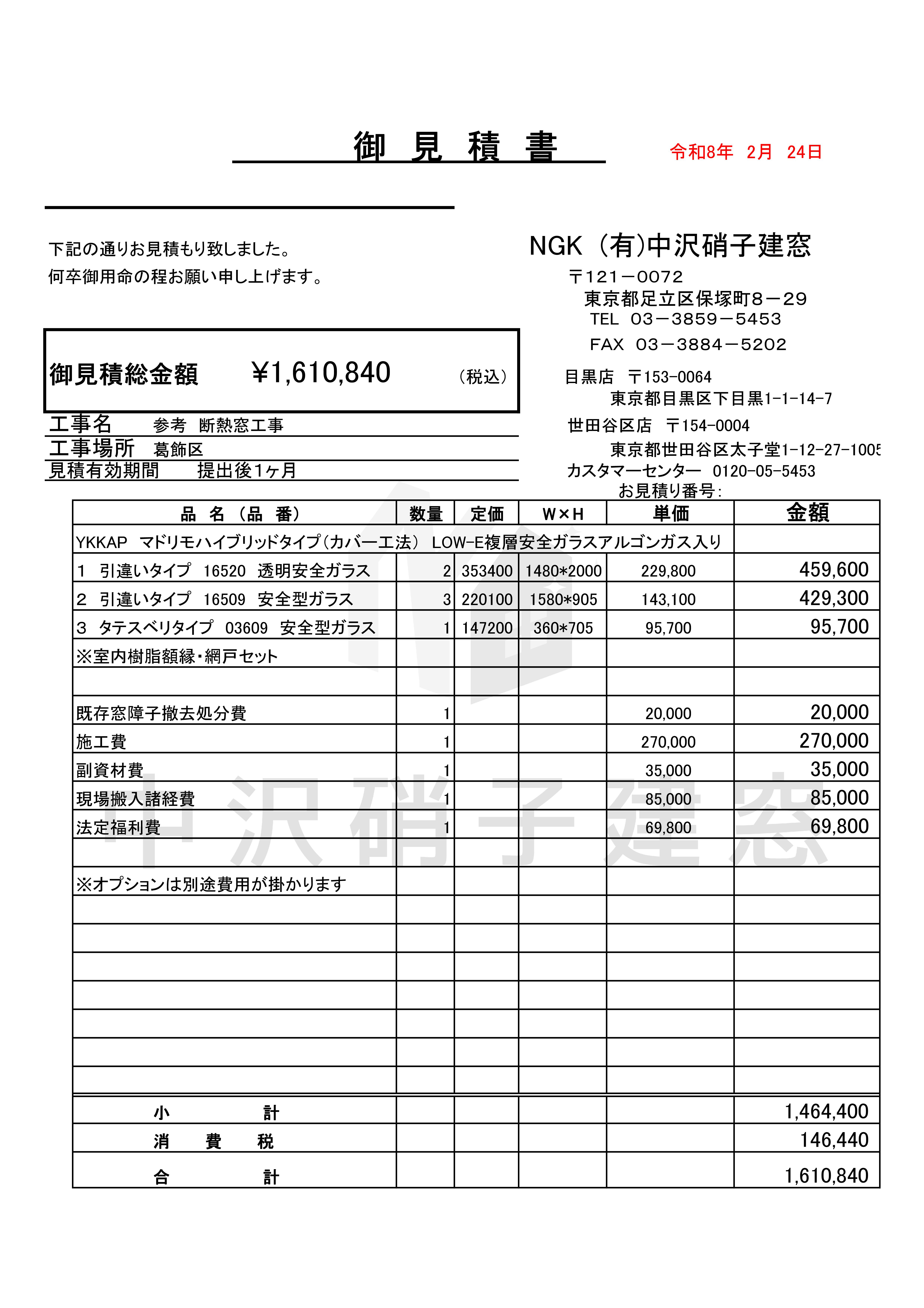 お見積り 1,610,840円