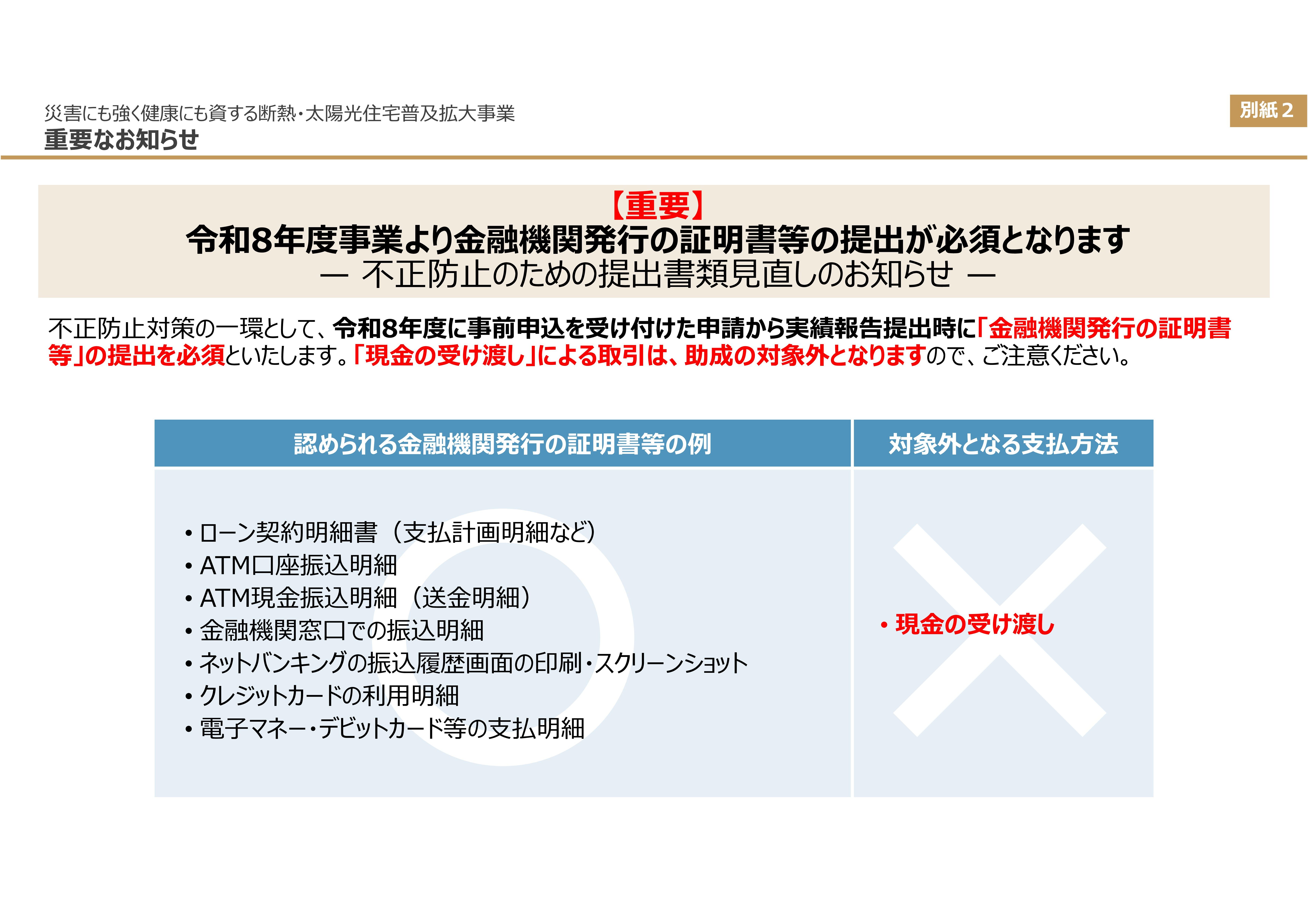 4. 【要注意】現金の支払いは対象外!振込証明書が必須に 窓の工事に限った変更ではありませんが、絶対に知っておくべき重要な注意点があります
