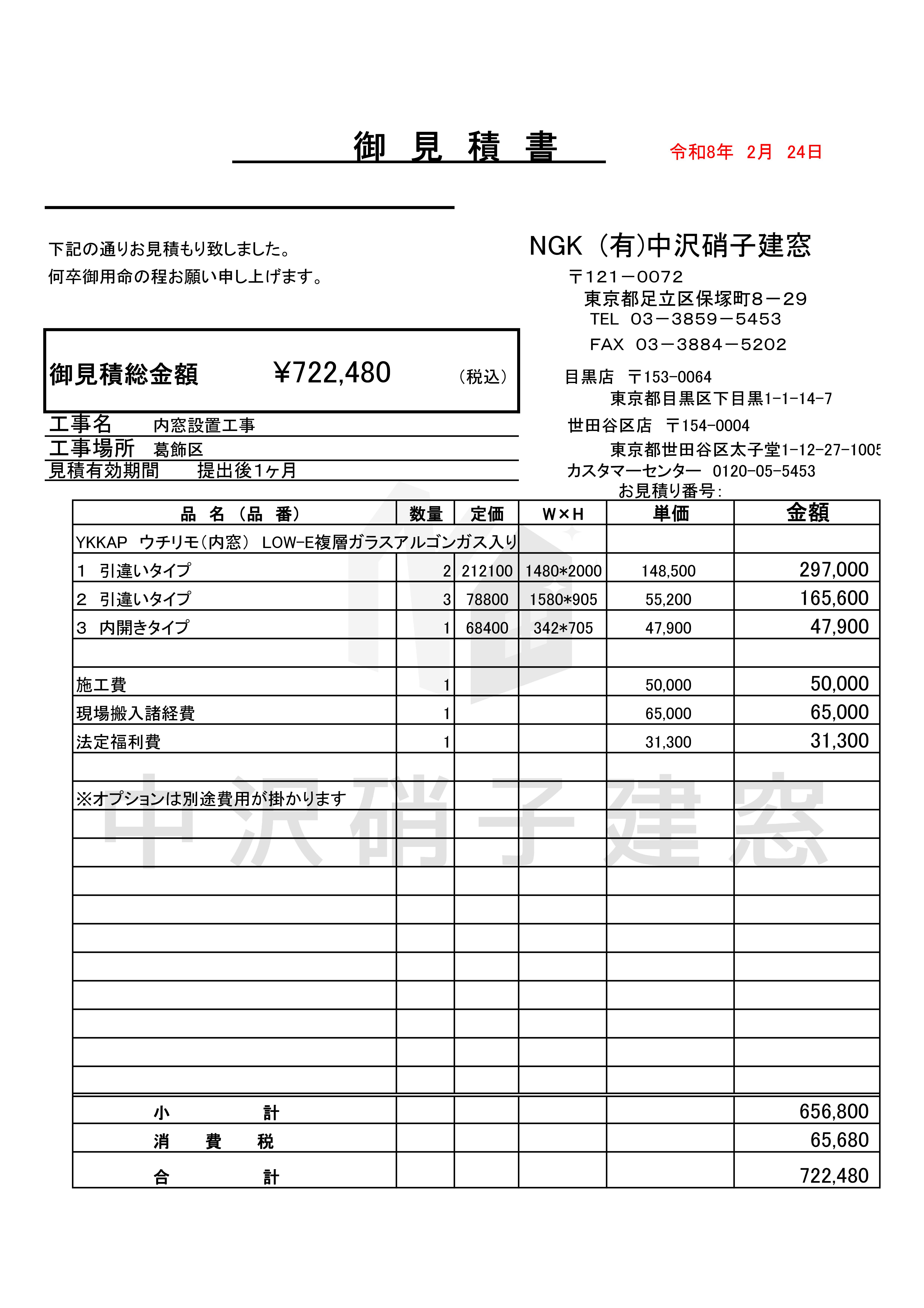 お見積り 722,480円