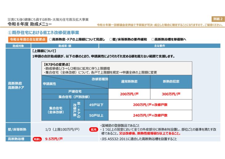 今回の最大の目玉は、高断熱窓の助成単価が大きく拡充されたことです
