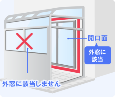 - ※2 開口面とは、外窓(複数のサッシで構成された出窓を含む)やドアを設置するために外壁に空けられた開口に対して、周囲の壁面を延長してできる面をいいます。