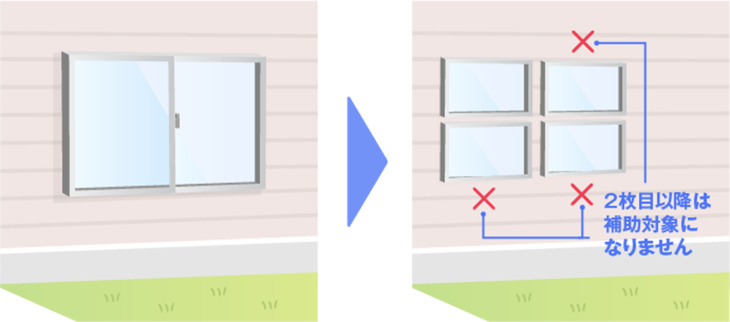 - ※一つの開口部に複数の新しい製品を設置する場合、複数の新しい製品のうちの一部を本事業、一部をみらいエコ住宅2026事業へ申請するといった申請はできません。(両事業を通じて、既存数と同数までが補助対象となります)