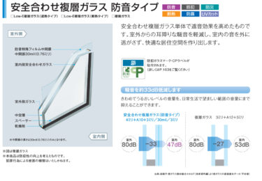 騒音でお困りのお客様には、防音合わせガラス仕様をお勧めいたします。