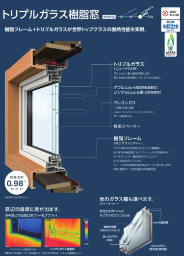 ガラスは2通り選べて、通常のLOW-E断熱複層ガラスか、LOW-E断熱トリプルガラスになります。