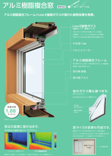 これでは、分からないと思うので、アルミ樹脂複合サッシは1.88W/(㎡・K)